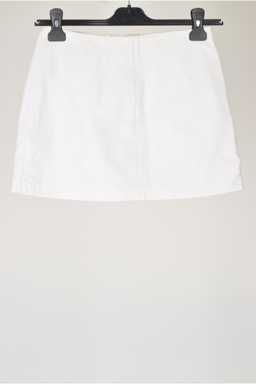 Fustă cochetă albă din piele naturală