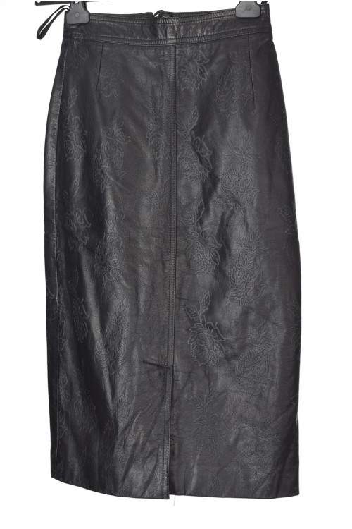 Fustă de damă grațioasă neagră din piele naturală