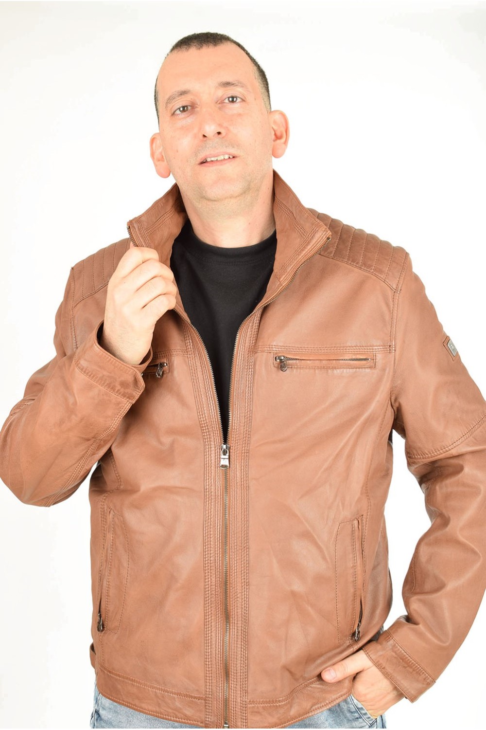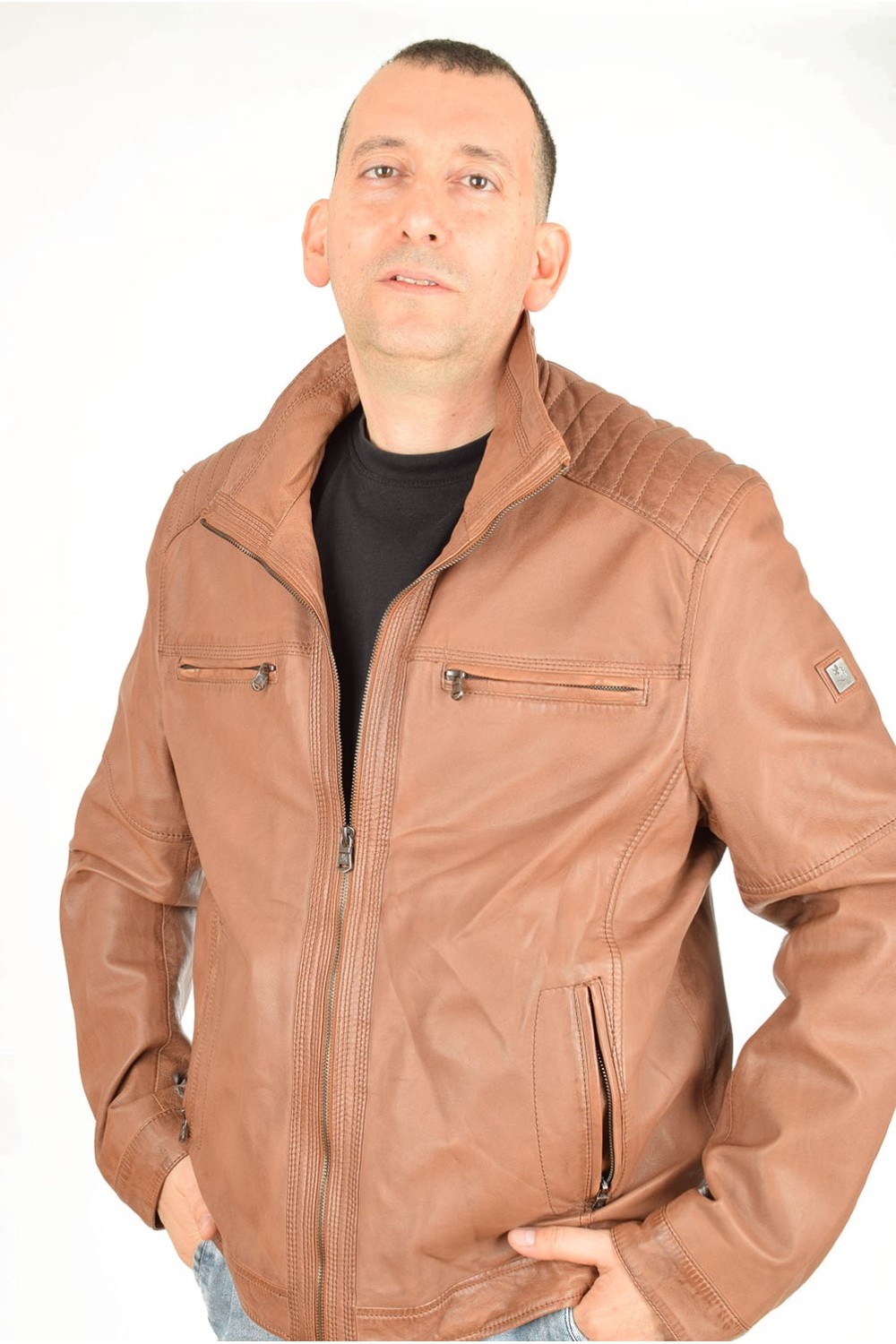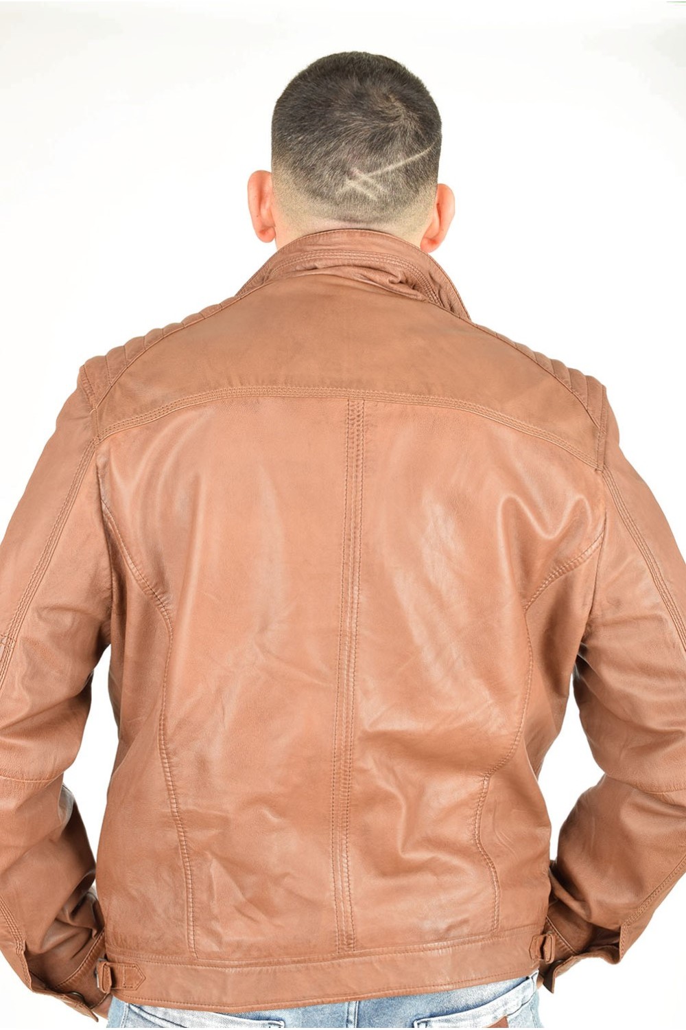 Geacă clasic brună din piele naturală