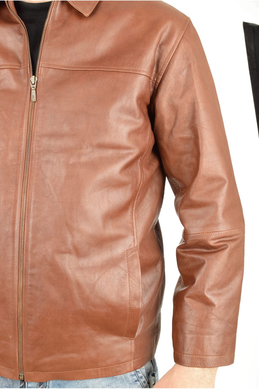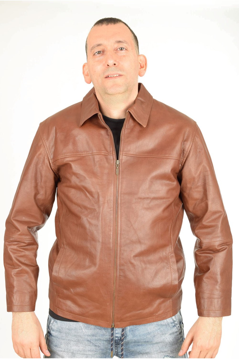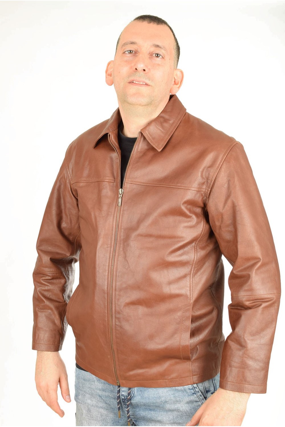 Geacă clasic brună din piele naturală