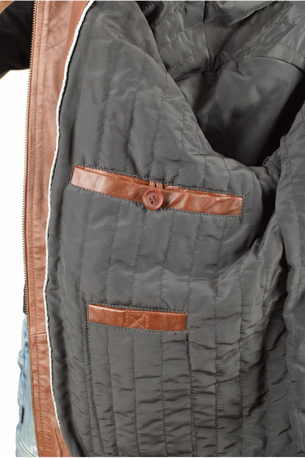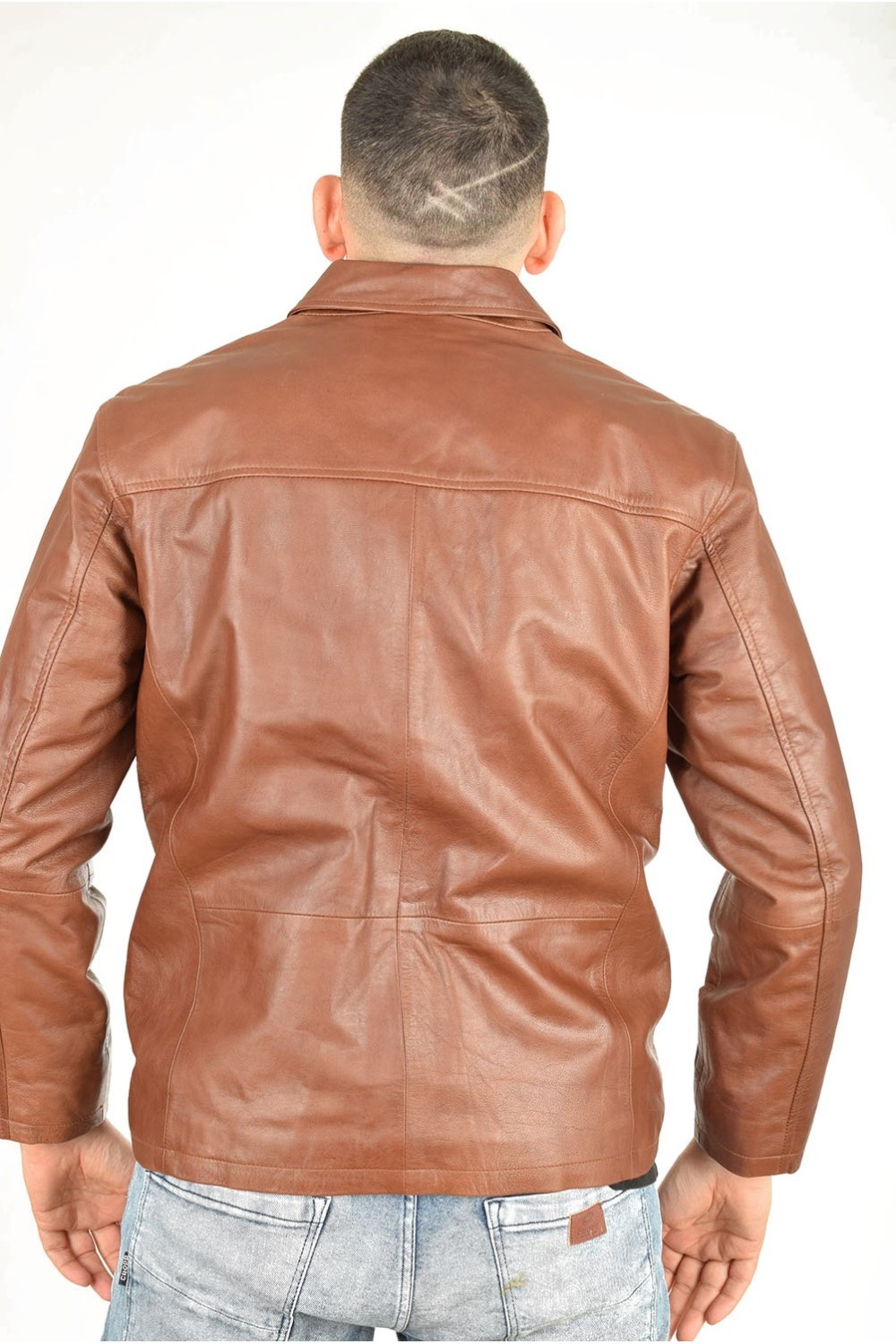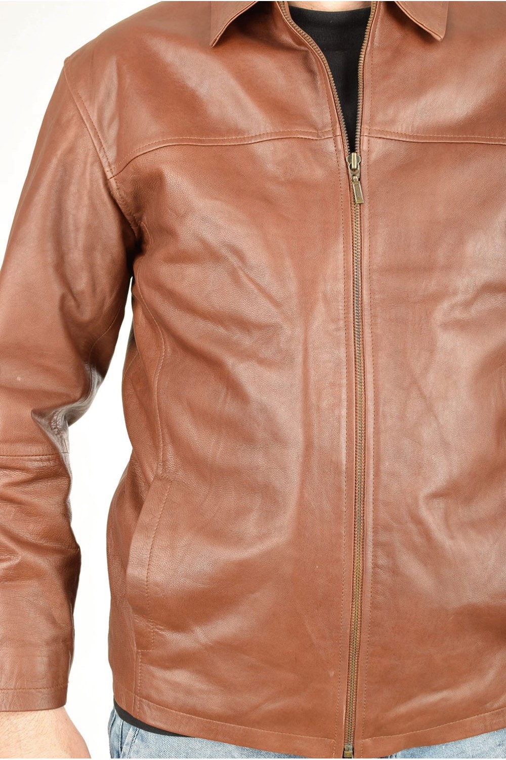 Geacă clasic brună din piele naturală