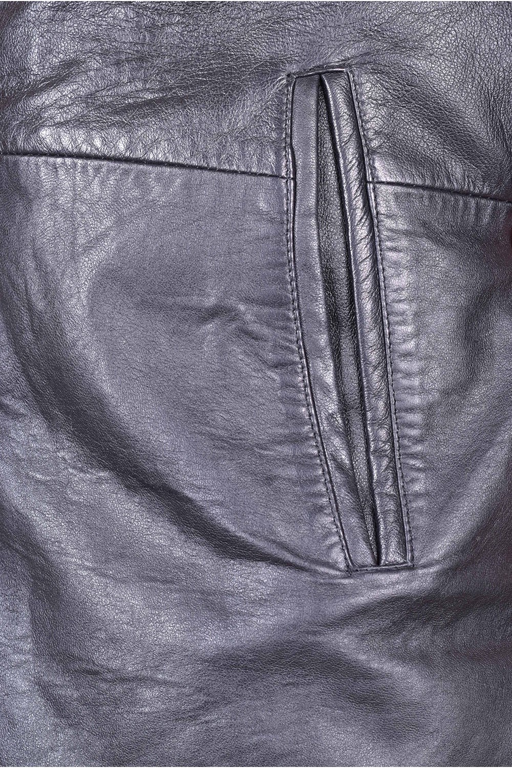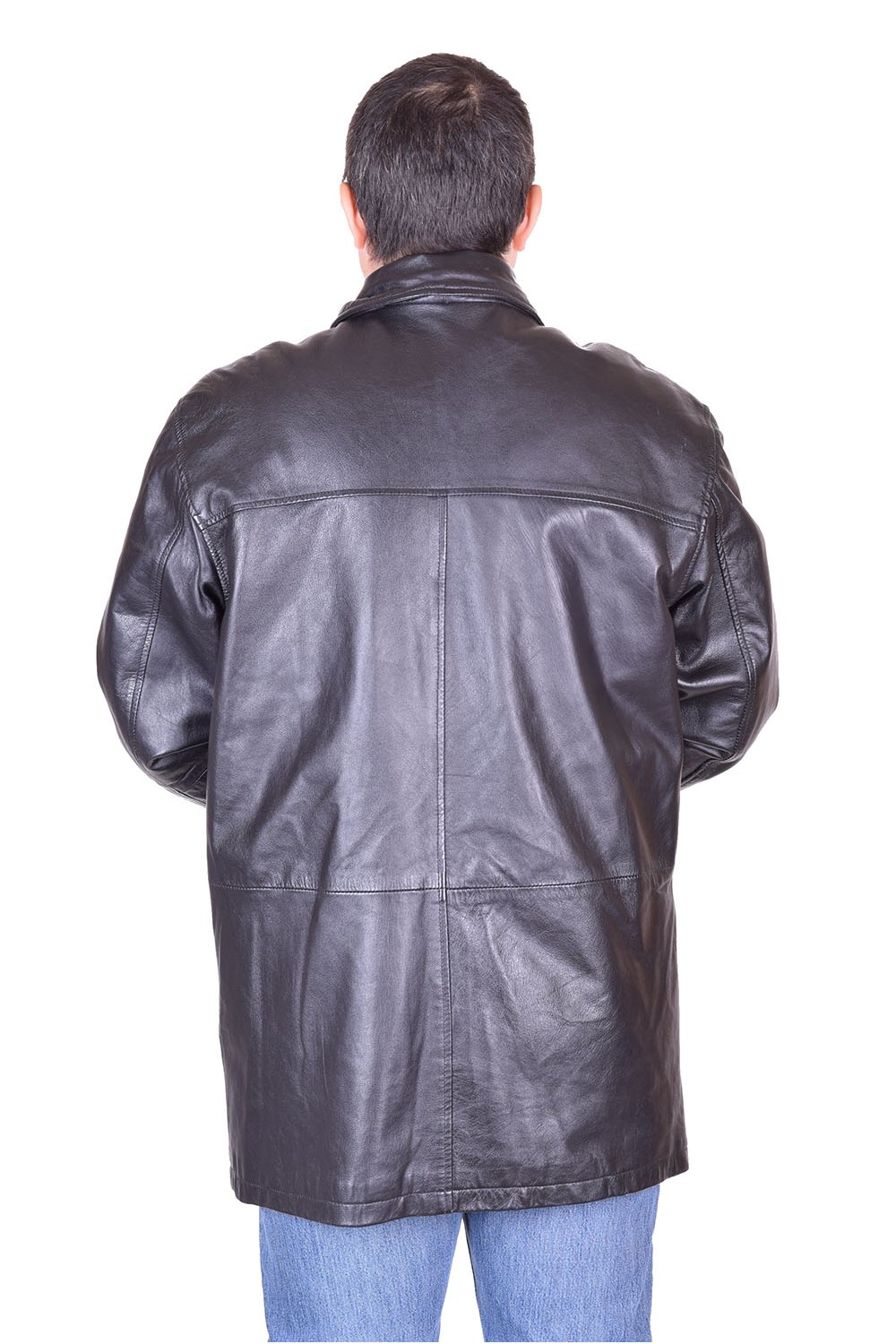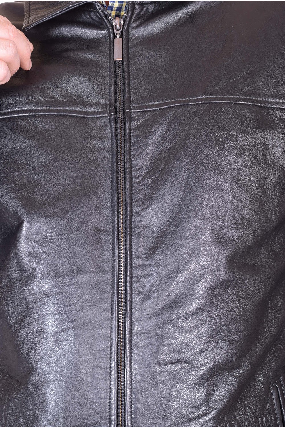 Geacă neagră din piele naturală moale și consistentă cu fermoar metalic, căptușeală din poliester și două buzunare în fața. Bust: 126 cm. Lungime: 83 cm. Talie: 120 cm. Șold: 120 cm. Umeri: 52 cm. Distanta dintre umeri este măsurată de la cusătură la cusătură mâneci. Lungime mânecii: 62 cm. Modelul este pentru înălțime de 170 cm.