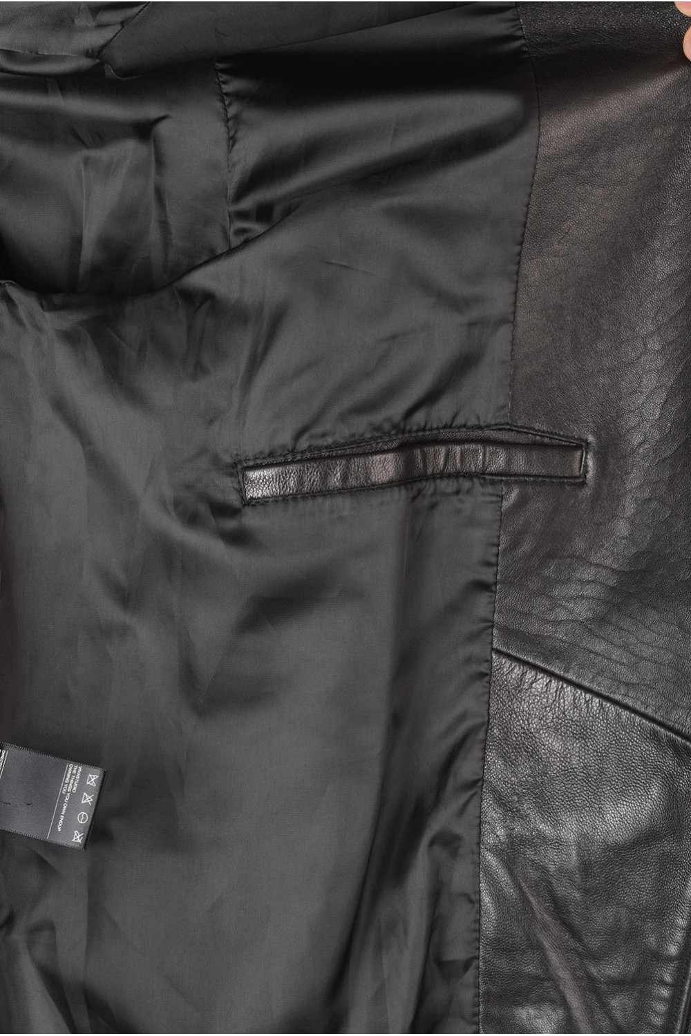 Geacă . Bust: 116 cm. Lungime: 70 cm. Talie: 106 cm. Umeri: 48 cm. Distanta dintre umeri este măsurată de la cusătură la cusătură mâneci. Lungime mânecii: 65 cm. Modelul este pentru înălțime de 182 cm.