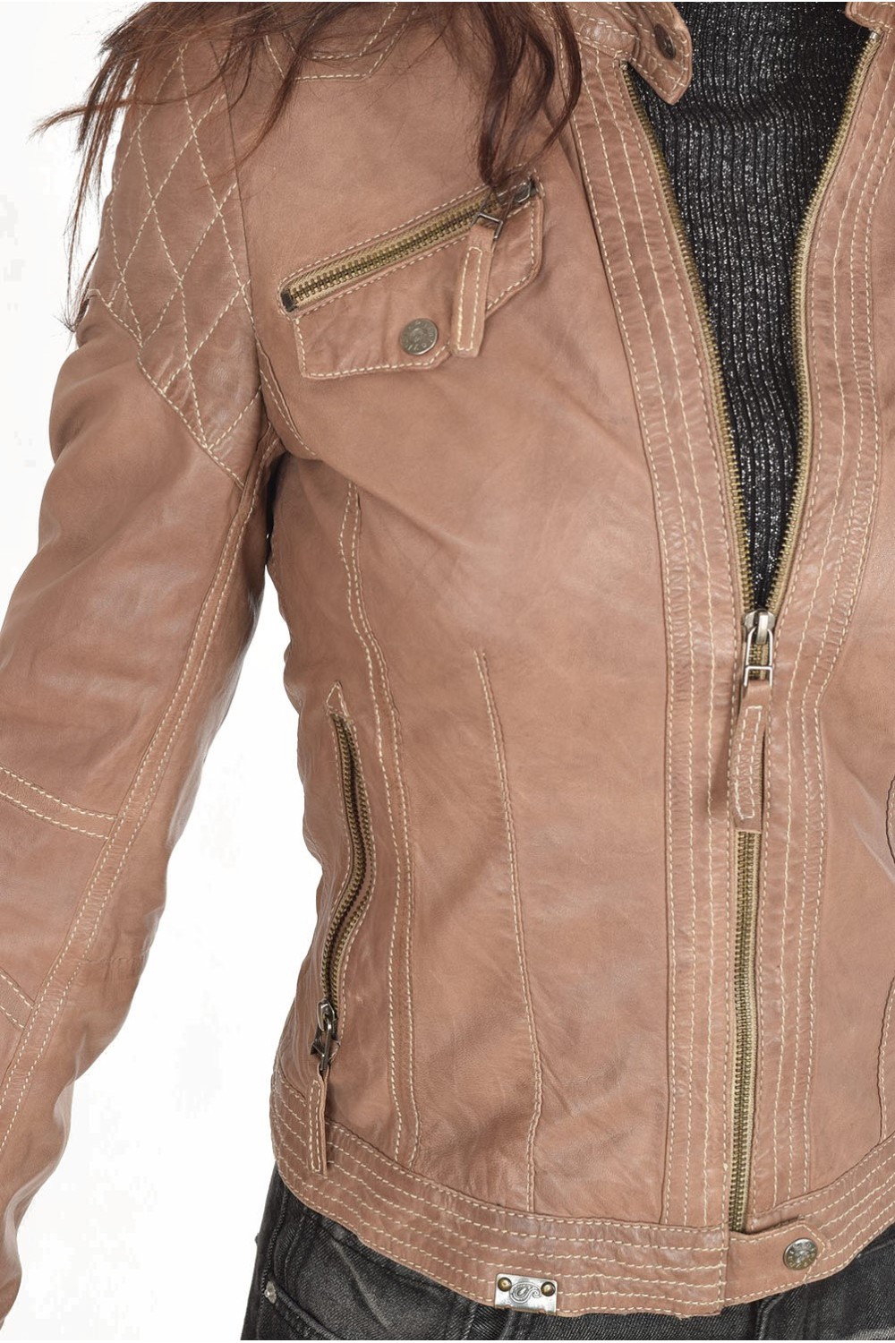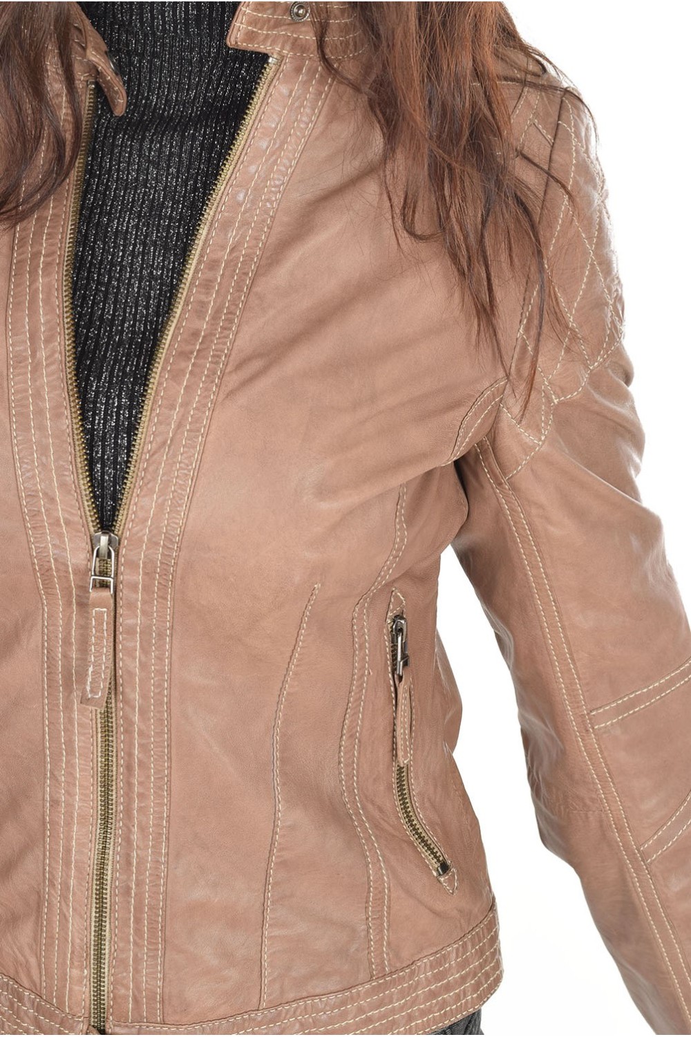 Geacă de damă bej din piele naturală