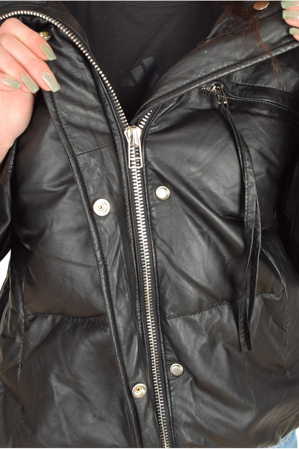 Geacă de damă cochetă din piele artificială cu mâneci detașabile