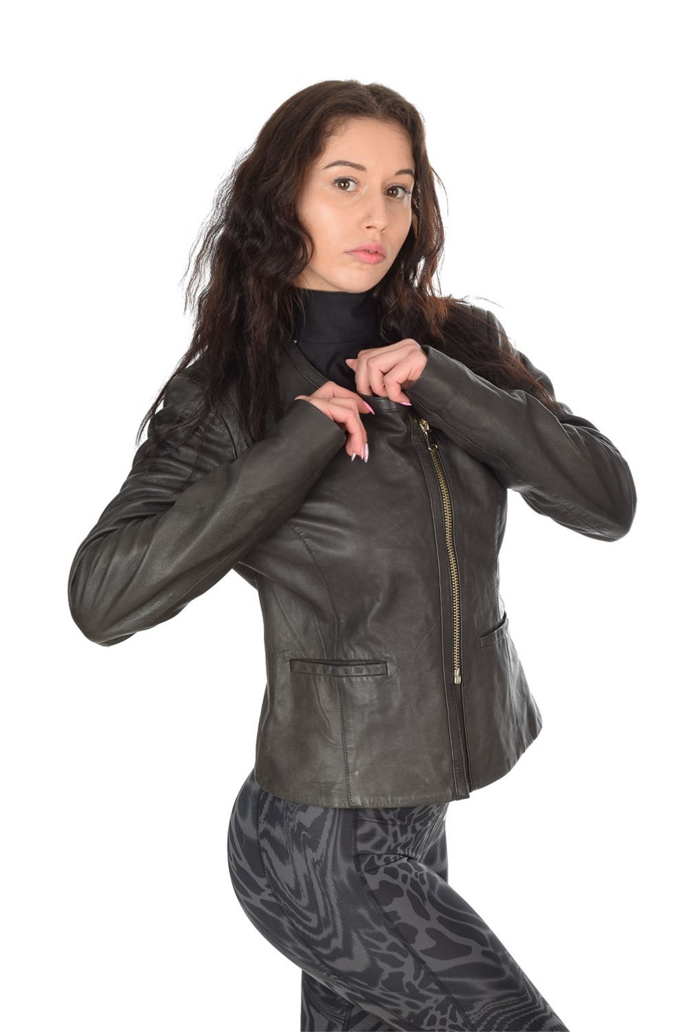 Geacă . Bust: 90 cm. Lungime: 48 cm. Talie: 84 cm. Umeri: 40 cm. Distanta dintre umeri este măsurată de la cusătură la cusătură mâneci. Lungime mânecii: 65 cm. Modelul este pentru înălțime de 170 cm.