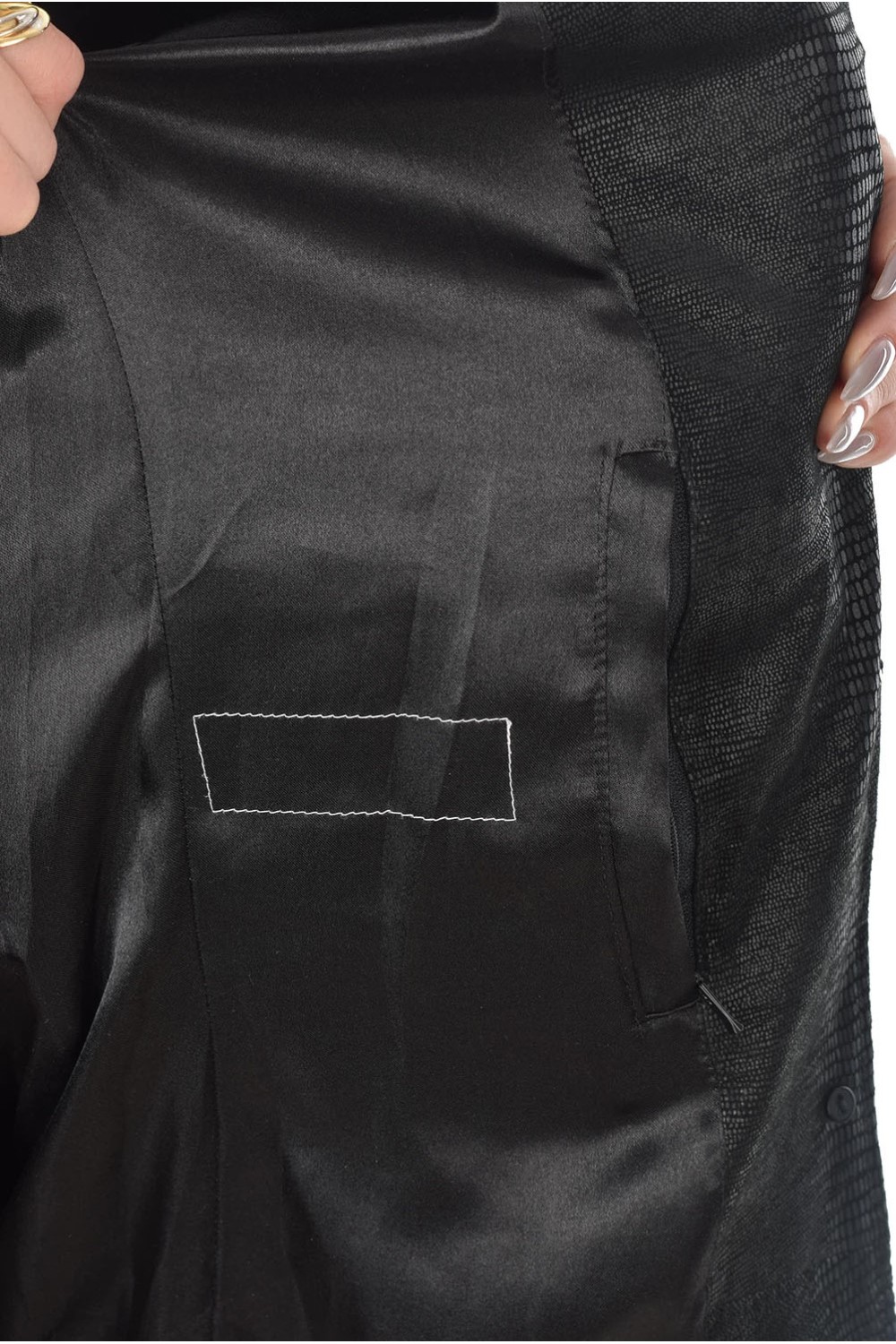 Geacă . Bust: 108 cm. Lungime: 85 cm. Talie: 94 cm. Umeri: 45 cm. Distanta dintre umeri este măsurată de la cusătură la cusătură mâneci. Lungime mânecii: 62 cm.
