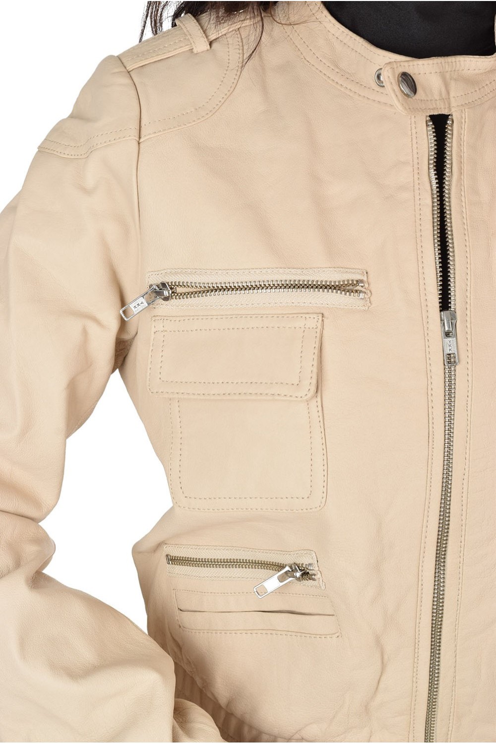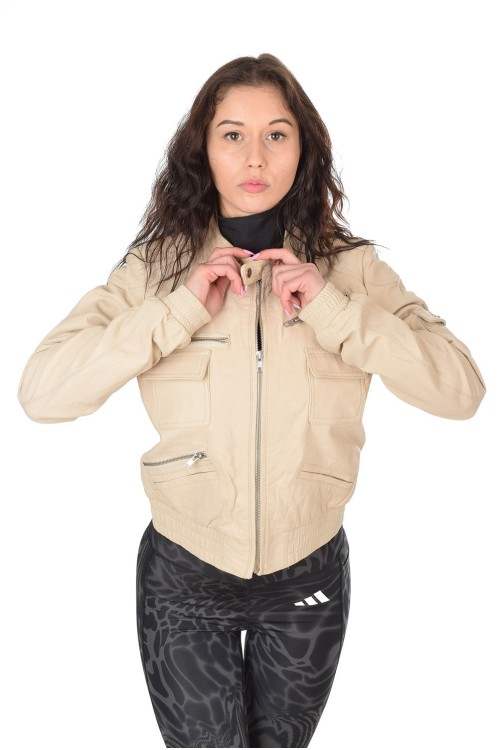 Geacă . Bust: 100 cm. Lungime: 54 cm. Talie: 82 cm. Umeri: 38 cm. Distanta dintre umeri este măsurată de la cusătură la cusătură mâneci. Lungime mânecii: 66 cm. Modelul este pentru înălțime de 170 cm.