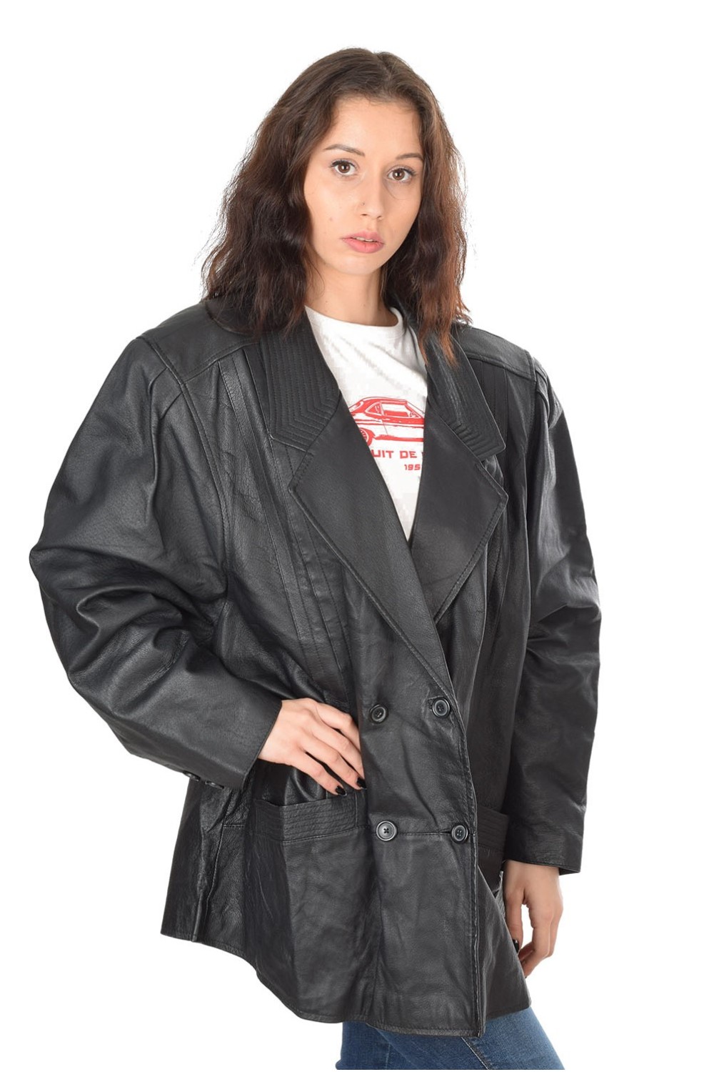 Geacă . Bust: 138 cm. Lungime: 80 cm. Talie: 136 cm. Umeri: 49 cm. Distanta dintre umeri este măsurată de la cusătură la cusătură mâneci. Lungime mânecii: 60 cm. Modelul este pentru înălțime de 170 cm.
