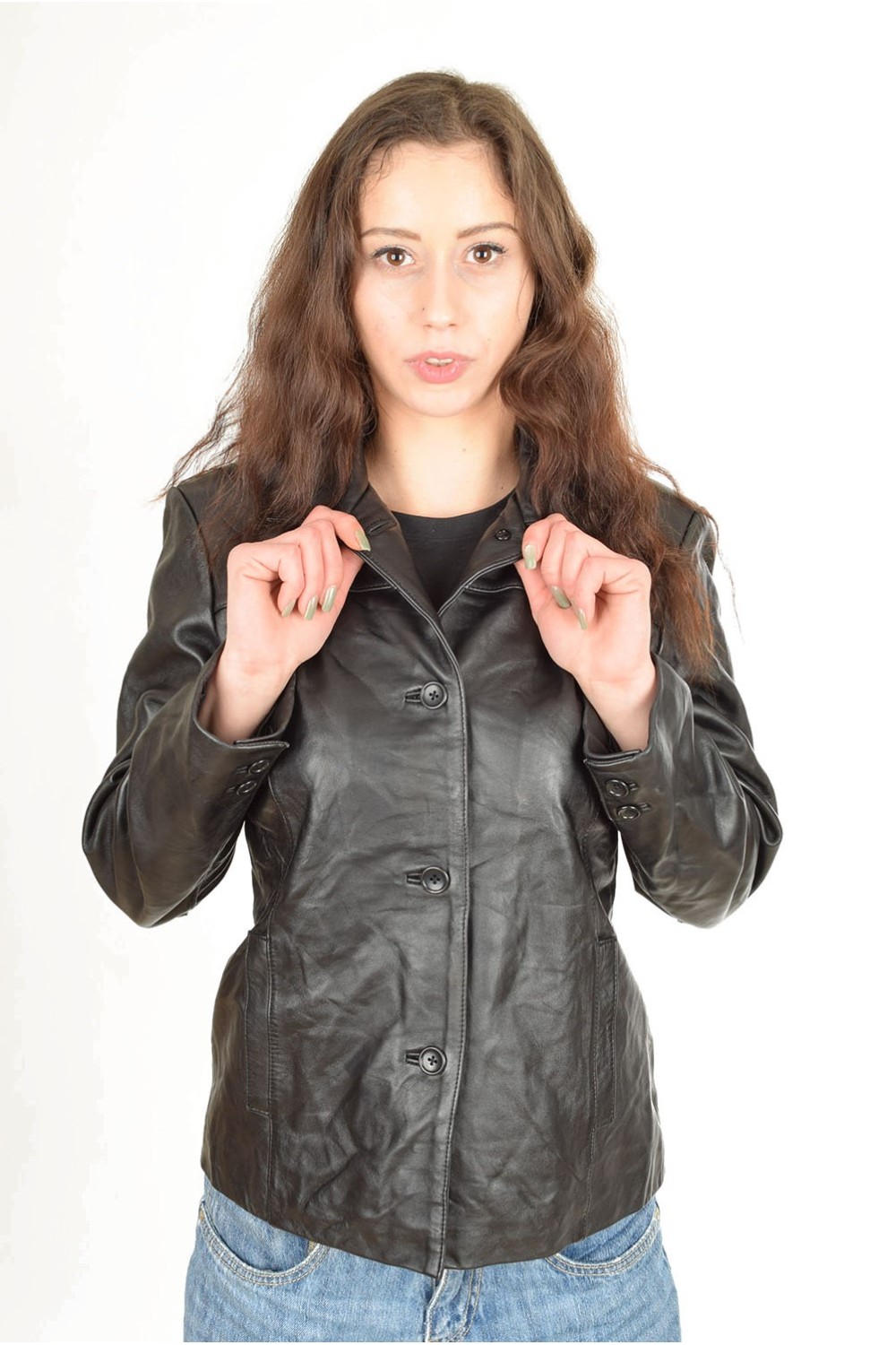 Geacă . Bust: 96 cm. Lungime: 63 cm. Talie: 88 cm. Umeri: 41 cm. Distanta dintre umeri este măsurată de la cusătură la cusătură mâneci. Lungime mânecii: 58 cm.