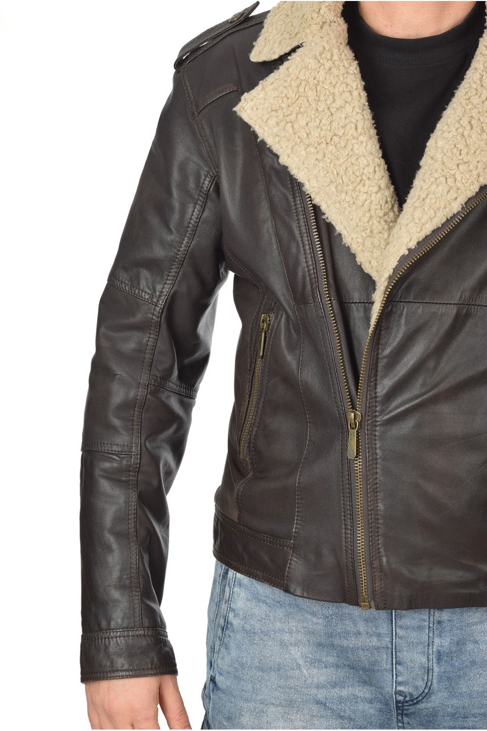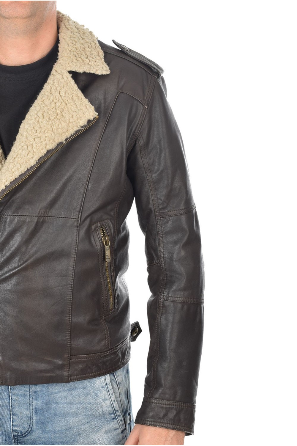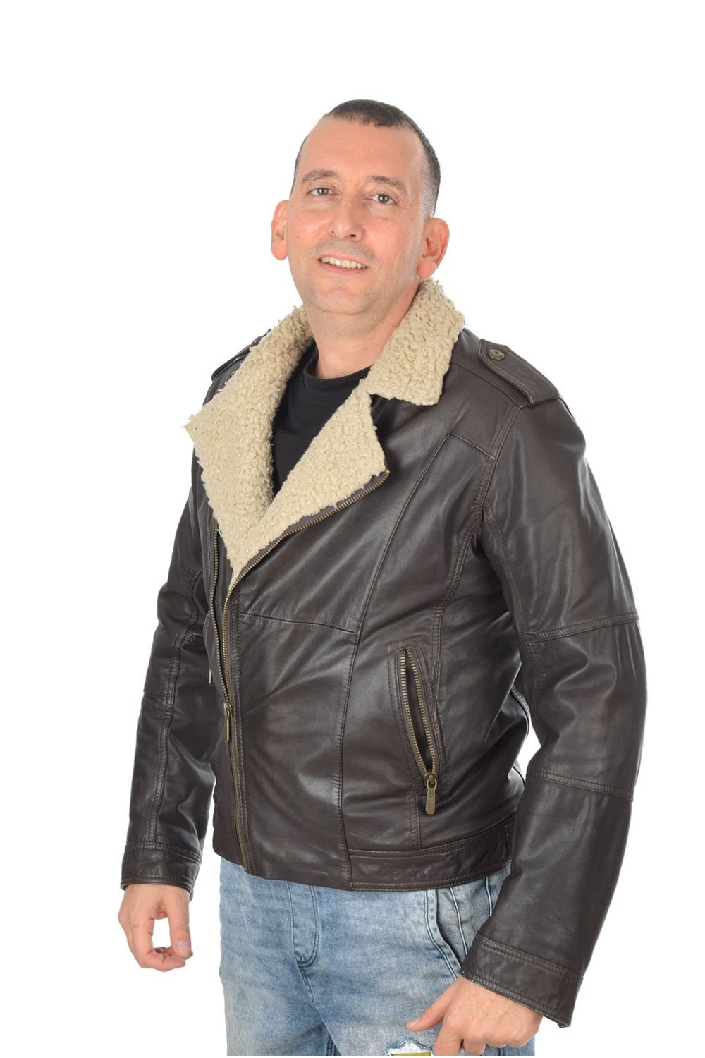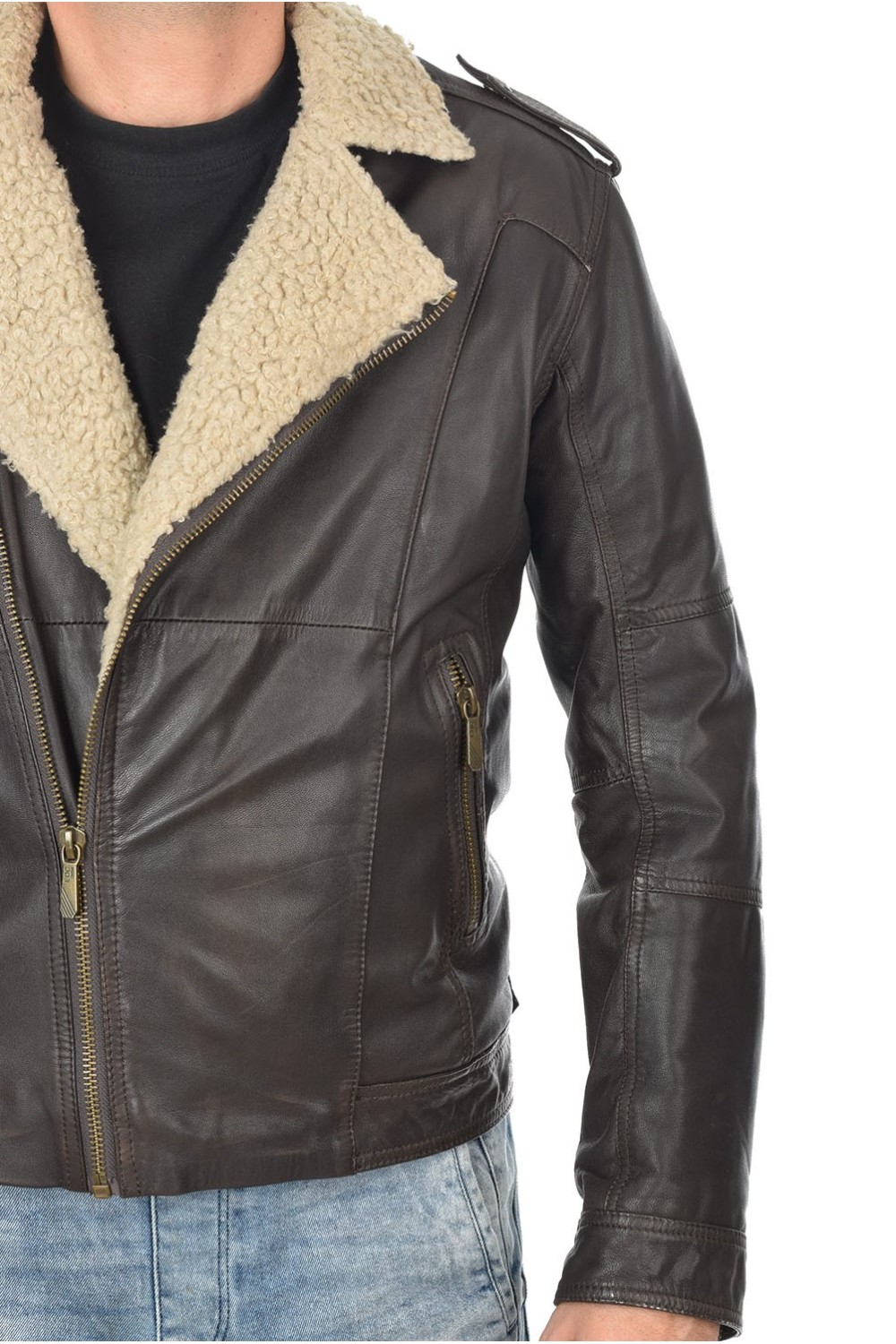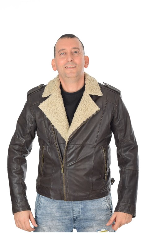 Geacă de firmă maro închis din piele naturală