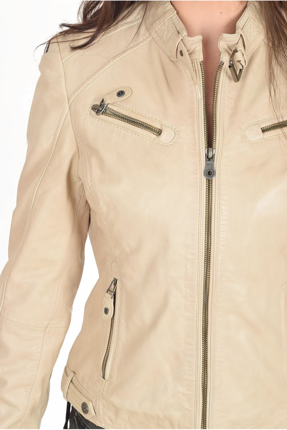 Geacă elegantă bej din piele naturală