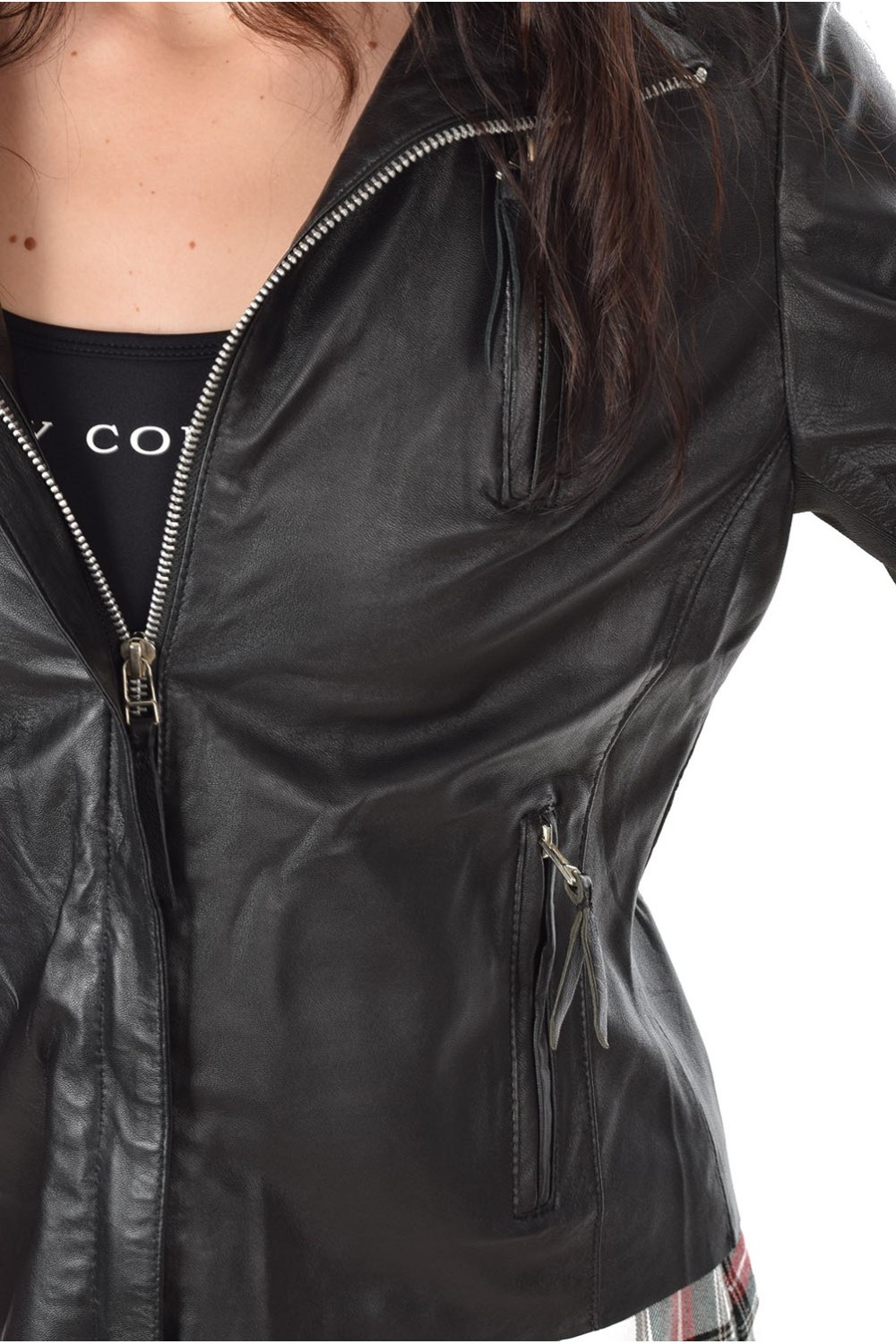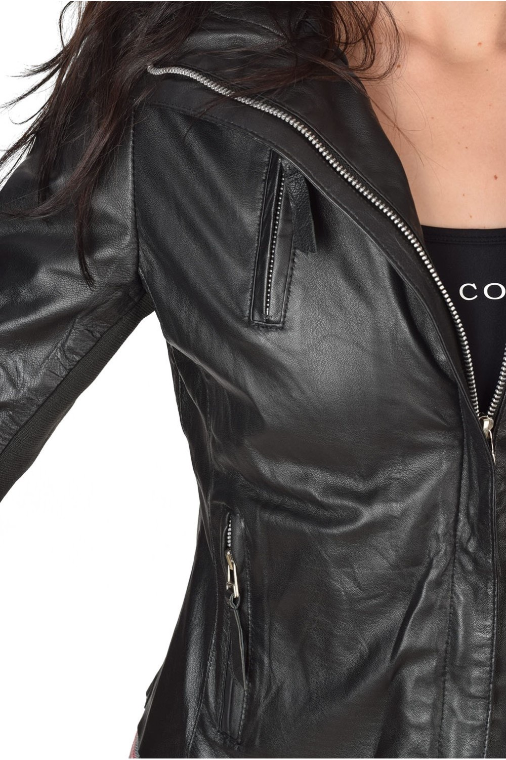 Geacă grațioasă neagră din piele naturală