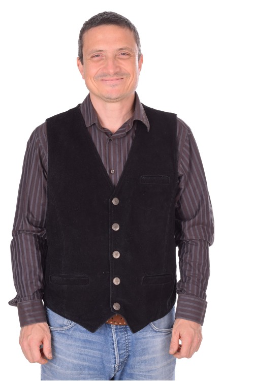 Vestă . Bust: 106 cm. Lungime: 62 cm. Talie: 104 cm. Șold: 104 cm. Umeri: 39 cm. Distanta dintre umeri este măsurată de la cusătură la cusătură mâneci. Modelul este pentru înălțime de 170 cm.