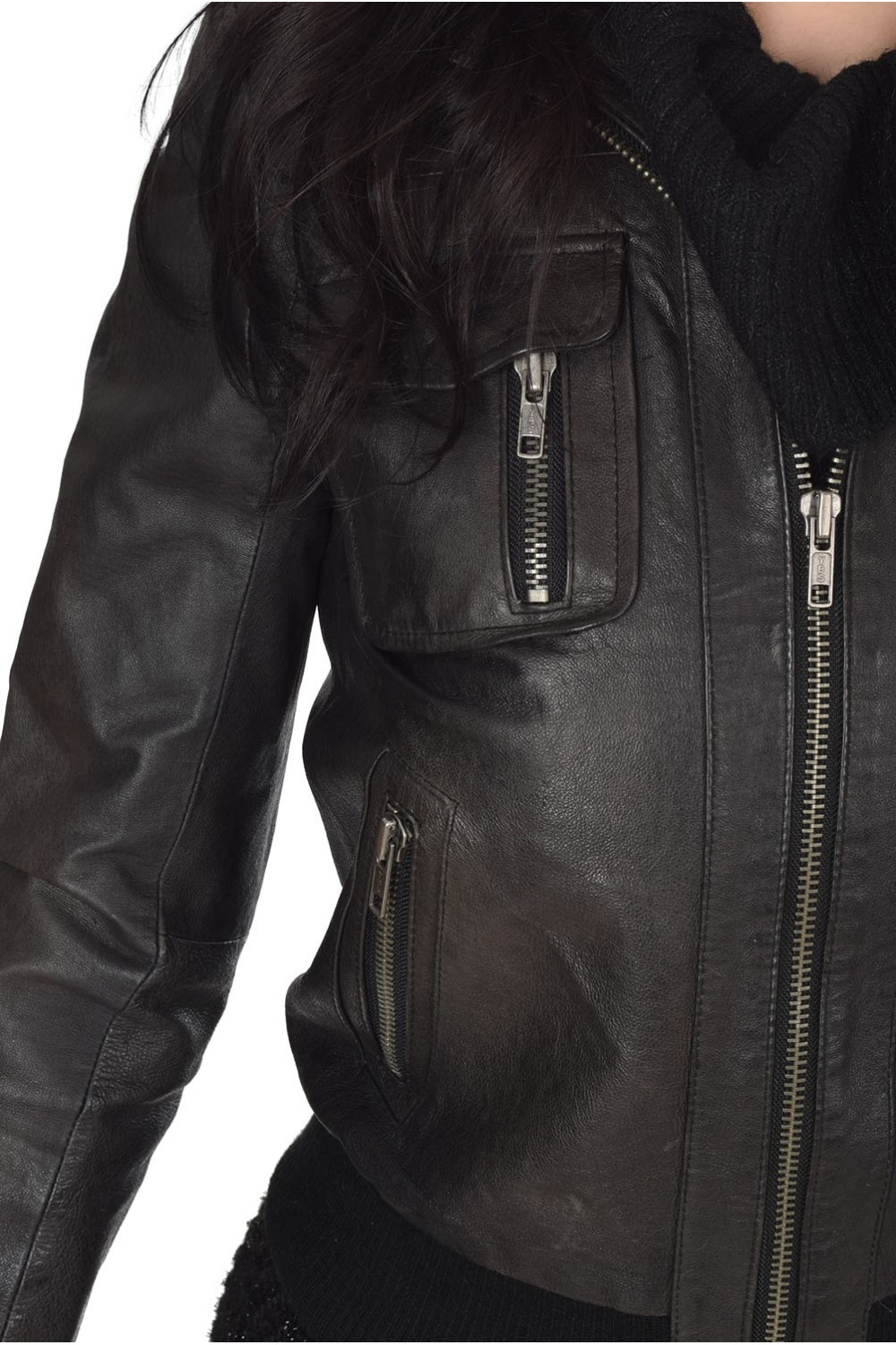 Geacă . Bust: 90 cm. Lungime: 64 cm. Talie: 82 cm. Umeri: 37 cm. Distanta dintre umeri este măsurată de la cusătură la cusătură mâneci. Lungime mânecii: 62 cm. Modelul este pentru înălțime de 170 cm.