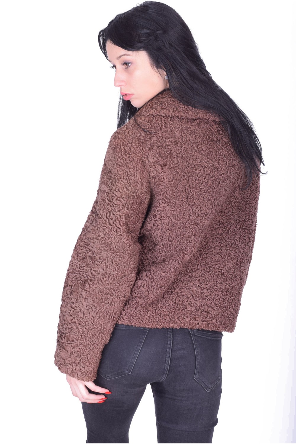 Palton piele naturală maro scurt . Bust: 108 cm. Lungime: 62 cm. Talie: 106 cm. Șold: 108 cm. Umeri: 52 cm. Distanta dintre umeri este măsurată de la cusătură la cusătură mâneci. Lungime mânecii: 56 cm. Modelul este pentru înălțime de 170 cm.