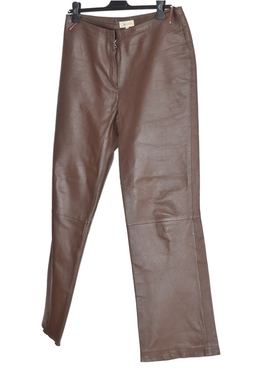 Pantalon de damă maro din piele naturală