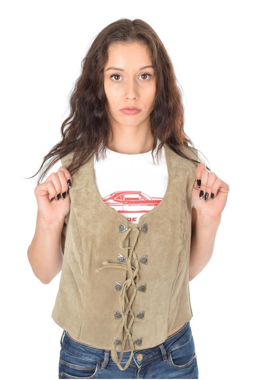 Vestă . Bust: 92 cm. Lungime: 49 cm. Talie: 88 cm. Modelul este pentru înălțime de 170 cm.
